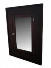 a spacious cabinet behind a mirror door. Inside are adjustable